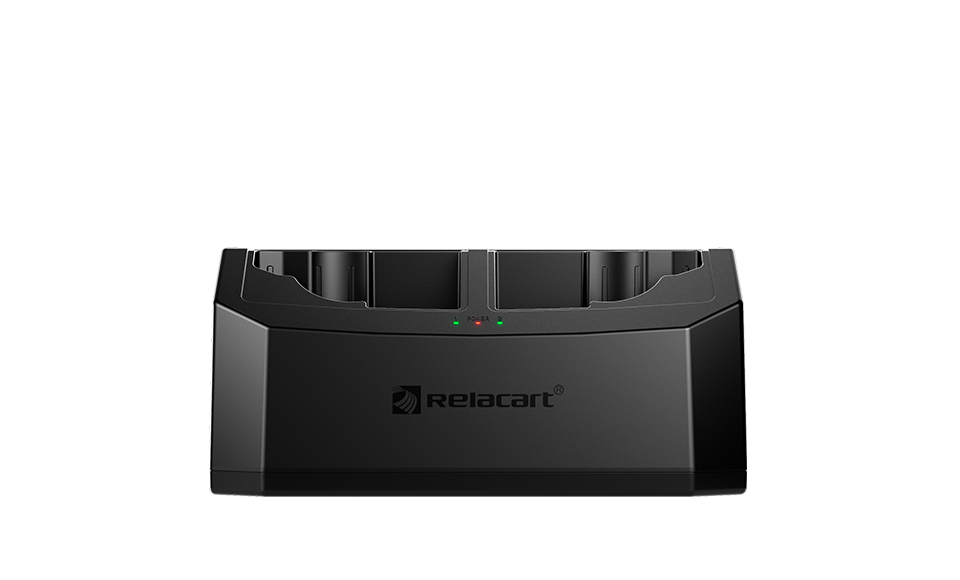Зарядное устройство с двумя отсеками подходит для портативных перезаряжаемых передатчиков Relacart и передатчиков-рюкзаков. Просто вставьте передатчики в него для зарядки.