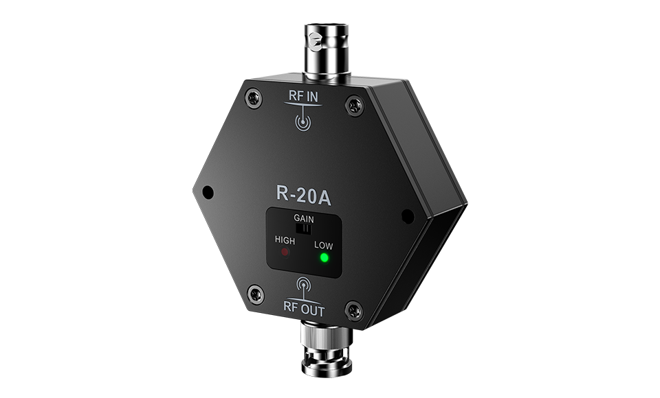 R-20A обеспечивает повышенное усиление приемных антенн, поддерживает эффективный и надежный сигнал и снижает вероятность его пропадания в сложных условиях радиосвязи. Компактный и легкий R-20A встроен в небольшой корпус и может быть подключен в середине соединительного кабеля.