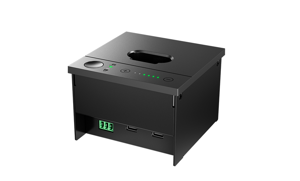 Зарядное устройство с одним отсеком, подходящее для серии IMIC-6, поддерживает функцию блокировки одним щелчком мыши, которая предотвращает потерю устройства после включения и проста в управлении. Он оснащен двумя коммуникационными портами TYPE-C и разъемом для подключения внешних управляющих сигналов, которые могут передавать информацию о состоянии оборудования в центральную систему управления для централизованного управления.