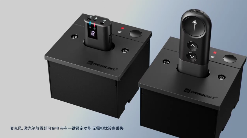 Кроме того, система оснащена лазерной ручкой с функцией перелистывания страниц и чехлом для зарядки с функцией блокировки. Просто подключитесь к центральной консоли, чтобы отслеживать информацию о микрофоне, автоматически определять местоположение устройства, низкий заряд батареи и т.д., не беспокоясь об управлении устройством.