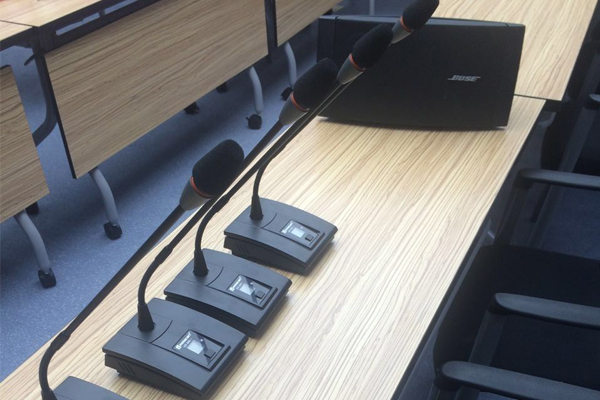 (Беспроводной конференц-микрофон Relacart UD-200) Гибкое расширение, быстрая и простая настройка, подходит для проведения различных конференций.WAM-400, сконфигурированный с 4 беспроводными каналами приема, может подключать 5 комплектов конференц-устройств WAM-400 по 20 штук одновременно для проведения будущих крупномасштабных совещаний. Relacart, сконфигурированный с портом RS-232, может подключать различные типы центрального управляющего оборудования, удобного для управления конференциями, следуя шагам развития Китая, помимо конференц-зала, WAM-400 также был установлен в многофункциональном зале. Как видно из рисунка, благодаря функции видеотрекинга, соответствующая система видеотрекинга VTS-1000 может реализовать функцию автоматического отслеживания видео, что соответствует требованиям расширения использования на встрече Китайской железнодорожной группы.