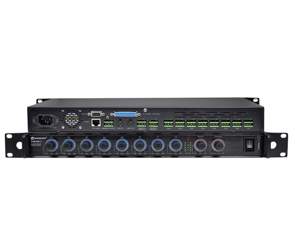 (Передний и задний интерфейсы DAM-800) Полностью цифровой интеллектуальный микшер DAM-800 - это идеальное сочетание цифрового звука и технологии цифрового управления, которое подходит для удовлетворения самых высоких требований. Строительство 271 образовательной группы в Шаньдуне, конференц-залов для сотен человек и многофункционального зала отеля. DAM-800 реализует интеллектуальное управление конференциями, нет необходимости выполнять полевые операции с помощью подробных настроек подключения к ПК или мобильному телефону, который оснащен специальным программным обеспечением, может дистанционно управлять реализацией современного интеллектуального управления, облегчая учебную группу 271 по управлению конференциями.