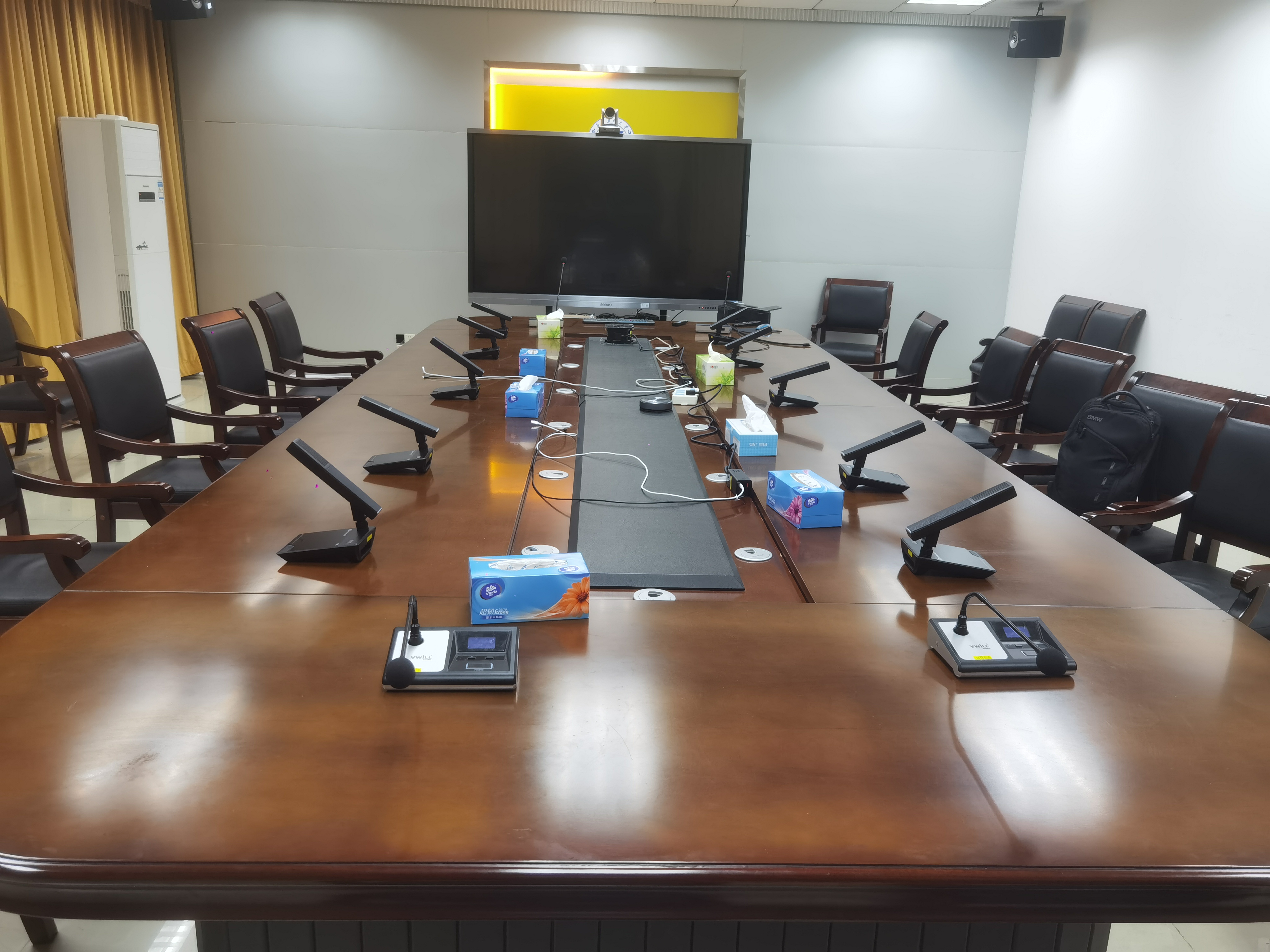 Through constant communication and exchanges, the technical staff clearly understood the characteristics of the conference room and the daily use needs, and decided to use the WAM-432 intelligent true diversity wireless automatic mixer system, in combination with the UD-223 desktop wireless conference microphone base and the GF-923 square microphone, to create a conference system with good sound quality, stable transmission and easy use.