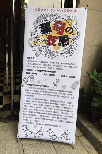 Театральное собрание в центре города, где состоялась премьера любовной драмы ”Фантазии новичка”, поставленной в театре Феникса группы "Бигуиюань". Чжоу Синг, Жужу и Сонгбаоли рассказали о своих мечтах в классе, когда они были маленькими. Когда они вырастают, они бегут по своей собственной колее, потому что судьба тянет их за собой, перекресток за перекрестком жизни. Здесь у них смятение, неразбериха, высокий моральный дух, но также и напряженная борьба, но, смеясь или плача, они ищут мечту и самих себя. Директор театрального объединения Perform unit Gathering of arts center Ван Юхан сказал: "Эта драма обоснована, связана с мечтами молодых людей, реальностью, борьбой, легко находит отклик у старшеклассников, студентов колледжей".;