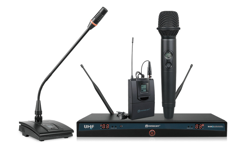 TM-200 - это беспроводной приемник с разнесенной связью, разработанный компанией Relacart независимо друг от друга; опционально можно выбрать портативные микрофоны, петличные микрофоны в корпусе или микрофоны для гарнитуры, а также настольные конференц-микрофоны на гусиной шее; Функция автоматического отключения. (Если микрофон расположен горизонтально или под углом менее 45 градусов, звук микрофона автоматически отключается на 5 секунд, микрофон автоматически выключается, когда он находится неподвижно в течение 10 минут, и микрофон автоматически отключается при падении с высоты. Предоставьте пользователям интеллектуальные энергосберегающие и удобные в использовании приложения.
