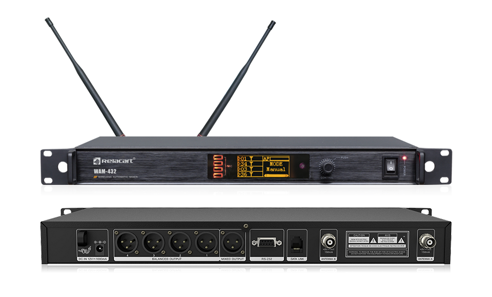 Полностью автоматический интеллектуальный беспроводной микшер WAM-432 - это новое поколение продуктов, разработанных с учетом сильных научно-исследовательских возможностей Relacart. В качестве ядра он использует высокопроизводительный микрокомпьютерный процессор. Обладая профессиональным и оригинальным дизайном, он гармонично сочетает в себе цифровые технологии управления, передовые технологии обработки звука и сетевые технологии, обеспечивая интеллектуальное управление и полностью автоматическую работу.